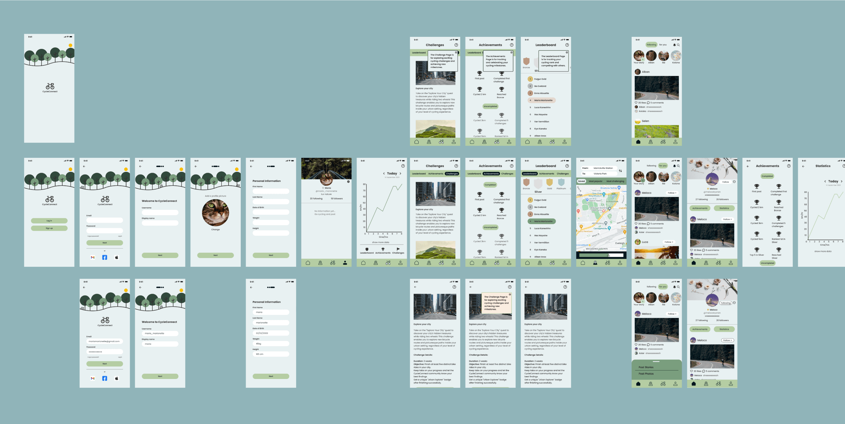 To evaluate the usability of the CycleConnect prototype, I conducted user testing with young adults who cycle for leisure or fitness, focusing on how well the app supports motivation, social engagement , and ease of navigation . The goal was to assess the clarity of the interface, feature discoverability, and overall user flow.