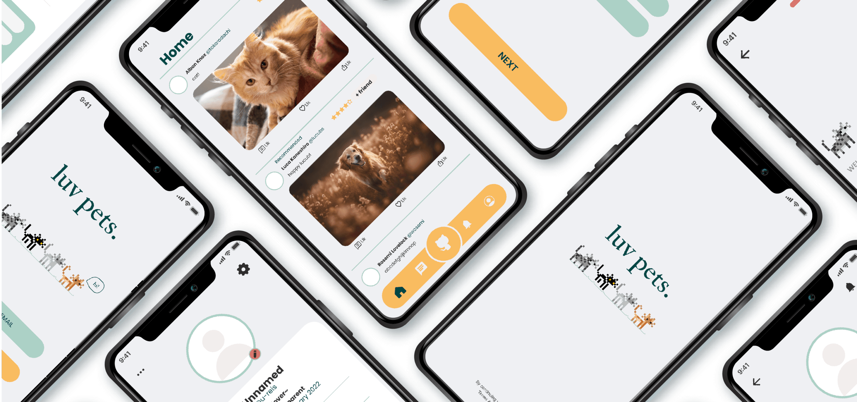 For DECO1006 Design Process and Methods, our team of three UX/UI designers developed Luv Pets, an app addressing challenges of pet ownership. I contributed to research, user testing, wireframing, and prototyping, focusing on solutions for hygiene, health, housing, and transport, ensuring a seamless experience for pet owners.